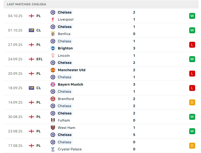 - Phong độ Chelsea