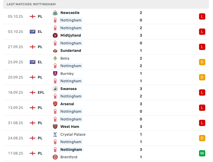 - Phong độ Nottingham Forest
