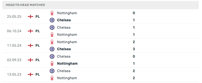 Những màn đụng độ giữa Nottingham Forest và Chelsea thường diễn ra chặt chẻ với ít bàn thắng được tạo ra, cụ thể ở 3/5 lần gặp nhau gần nhất và 3/5 lần đón tiếp Chelsea trên sân của Nottingham Forest khép lại không quá 2 bàn.