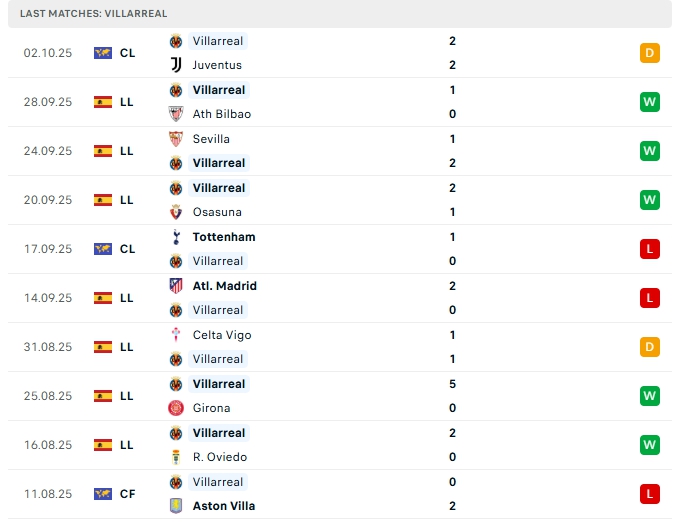 - Phong độ Villarreal