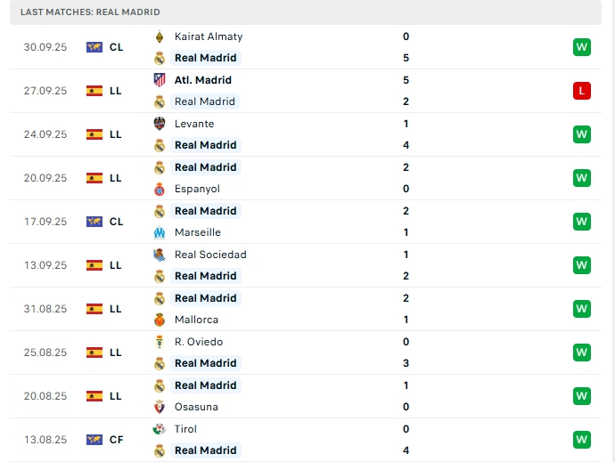 Real Madrid ở vòng đấu gần nhất, họ bất ngờ nhận thất bại 2-5 trước Atletico Madrid, dù vậy chiến thắng trước Kairat Almaty ở đấu trường Champions League, giúp đoàn quân của HLV Xabi Alonso lấy lại sự tự tin, sau 7 lượt trận ở đấu trường Laliga, Real Madrid mang về 6 chiến thắng cùng 1 thất bại, có được 18 điểm và đang xếp thứ 2 trên BXH, kém đội đầu bảng Barcelona chỉ 1 điểm, ngoại trừ thất bại trước ATM, thì phong độ của Real Madrid hết sức ấn tượng, trên sân nhà của mình Real Madrid bất bại ở 12 trận gần nhất với 11 chiến thắng.