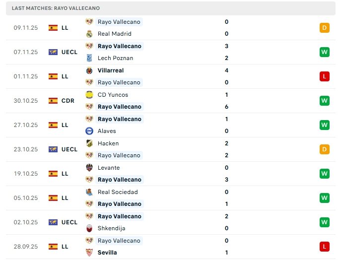 • Phong độ Rayo Vallecano