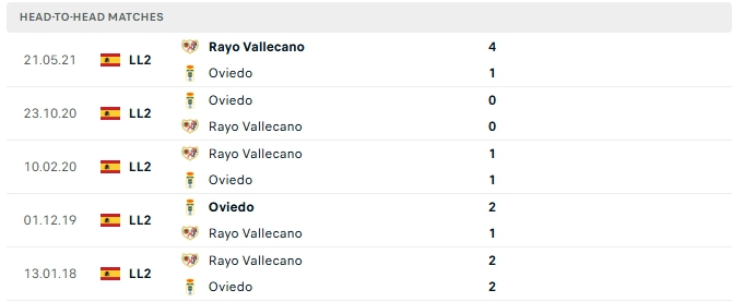 Lịch sử đối đầu của Real Oviedo vs Rayo Vallecano