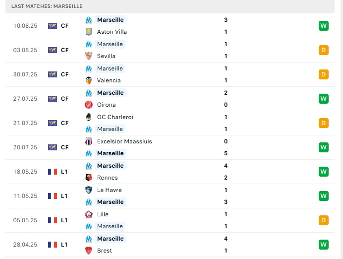 Marseille mùa giải trước (2024/25) kết thúc ở vị trí 2 với 50 điểm sau 34 trận (thắng 20, hòa 5, thua 9), có được 74 bàn thắng và nhận 47 bàn thua, để chuẩn bị cho mù giải mới họ có cho mình 6 trận giao hữu, trong đó hàng công có được 13 bàn thắng cùng hàng thủ nhận 4 bàn thua, 3/5 trận xa nhà của Marseille đều khép lại 90 phút từ 3 bàn trở lên.