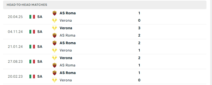 Lịch sử đối đầu của Roma vs Verona
