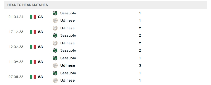 Những màn đụng độ giữa Sassuolo và Udinese thường diễn ra hấp dẫn với nhiều bàn thắng được tạo ra, 3/5 lần gặp nhau gần nhất của hai đội khép lại từ 3 bàn thắng trở lên, dù vậy trên sân nhà ở 4/5 lần đón tiếp Udinese của Sassuolo khép lại không quá 2 bàn thắng.