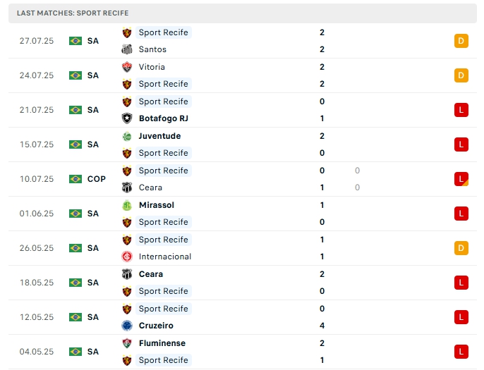 • Phong độ SC Recife