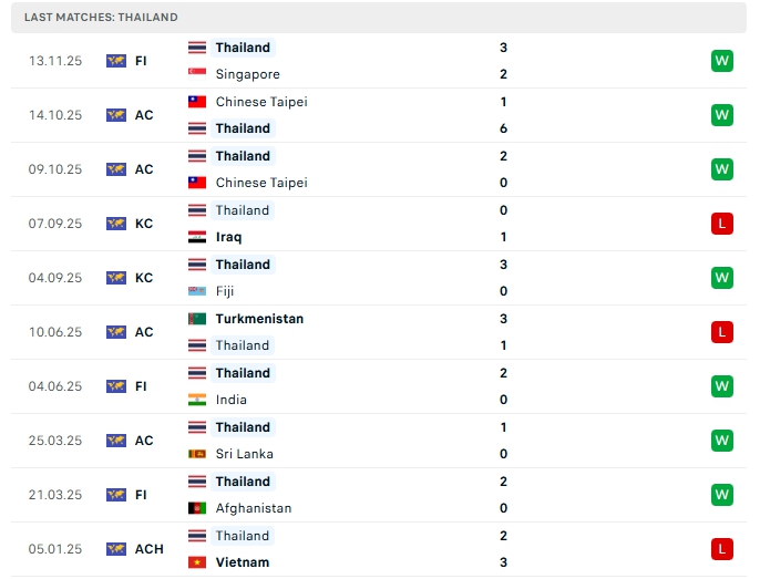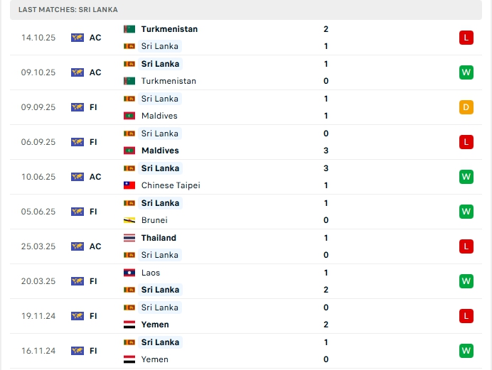 Phong độ gần đây Sri Lanka vs Thái Lan