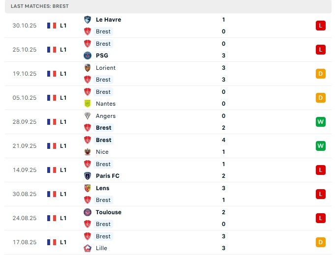 - Phong độ Stade Brestois