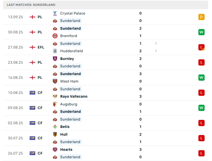 Sunderland sau 4 trận đấu họ mang về 2 chiến thắng, 1 hòa, cùng 1 thất bại, ở ngày ra quân, Sunderland có chiến thắng ấn tương 3-0 trước West Ham, sau đó họ nhận thất bại trước Burnley, mới nhất là chiến thắng trước Brentford và trận hòa trước Brighton, 7 điểm có được giúp Sunderland đang xếp ở vị trí thứ 7 trên BXH, một thành tích ấn tượng với một tân binh, phong độ gần đây của Sunderland là khá tốt , dù vậy trên sân nhà đội bóng này chỉ thắng 2 và thua 3 ở 5 trận vừa qua.