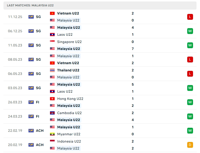 - Phong độ U22 Malaysia