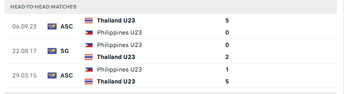 Lịch sử đối đầu của U23 Thái Lan vs U23 Philippines