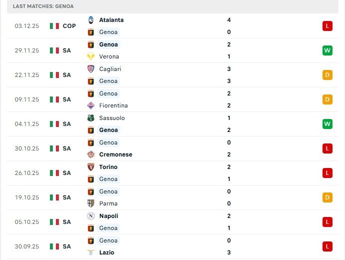 - Phong độ Genoa