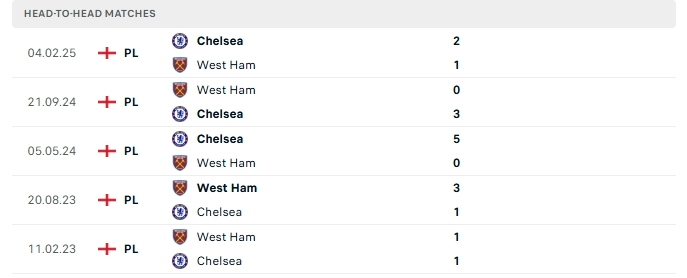 Lịch sử đối đầu của West Ham Utd vs Chelsea