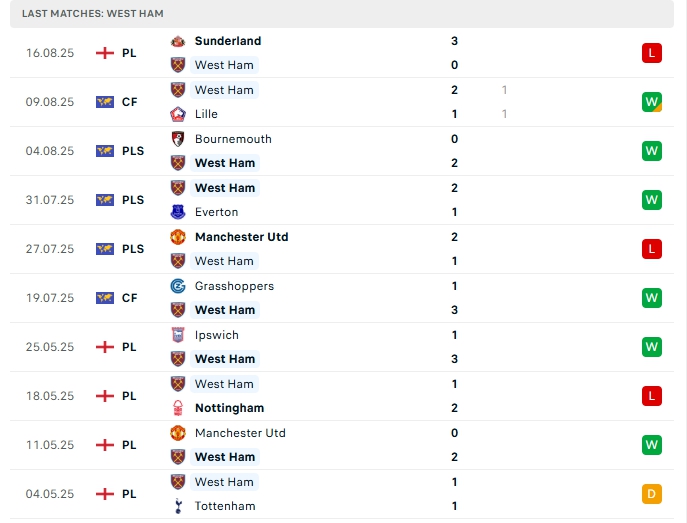 - Phong độ West Ham Utd