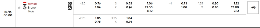 Bảng tỷ lệ kèo bóng đá trận đấu Yemen vs Brunei
